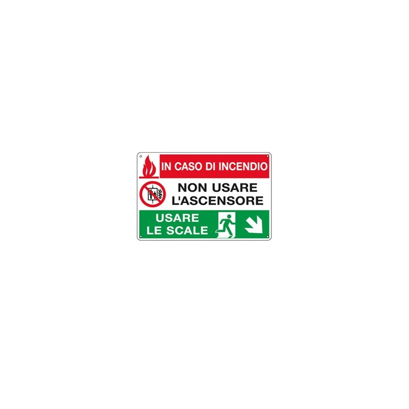 CARTELLO ALLUMINIO 30x20cm 'In caso di incendio non usare l'ascensore...'